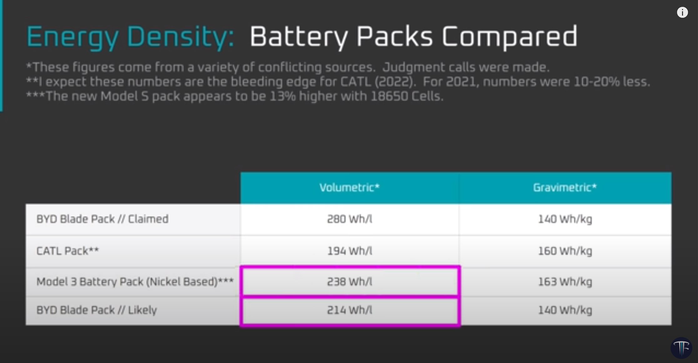 There’s an interesting discussion in this nice new video from @LimitingThe on an apparent gap between BYD’s reported Wh/L for the Blade pack and what it likely is. There’s probably some lessons here about not trusting everything you find on the internet…